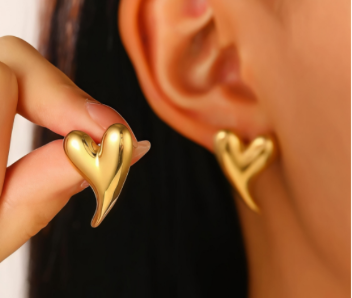 Minimal Heart Gold Stud Earrings
